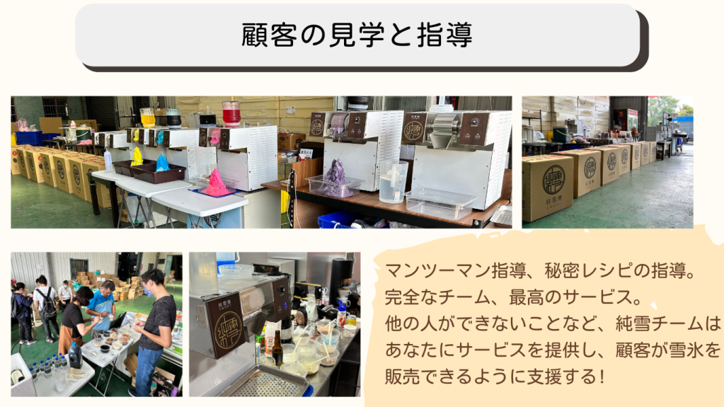 ISO 22000認証取得、純雪機特殊配合の3倍増量特許取得、元の工場で大量の果物を生産する超低コスト、店舗に超高利益のVIPサービスを提供、メニューと氷の製品方法の指導、簡単な初心者の起業家が収益に影響を与えるビジネスの中断を恐れずに、無料のバックアップマシン交換サービスを開始できるようにします。